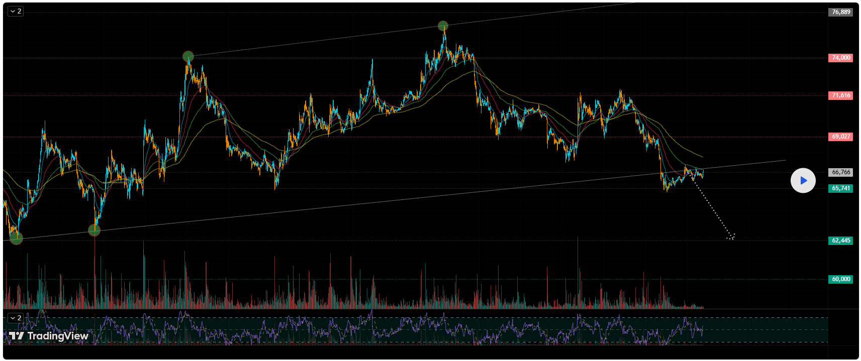 - Giá chạm hỗ trợ 65.741 - 62.445 - 60.000 (bật lại kèm nến M5 xác nhận)