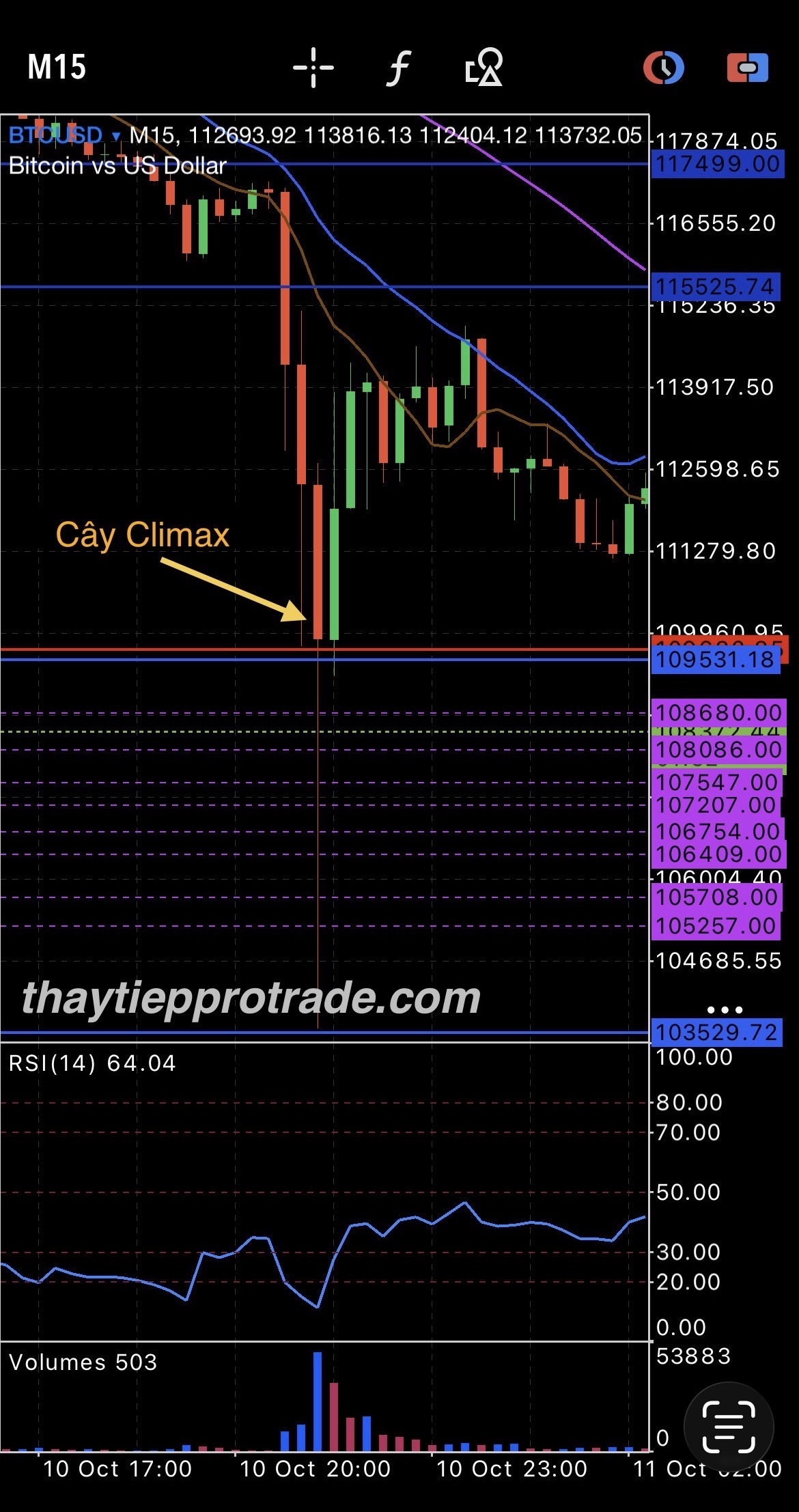 - Đây là dấu hiệu “Exhaustion move”– tức là chuyển pha từ “đẩy giá” sang “phân phối / tích luỹ”.