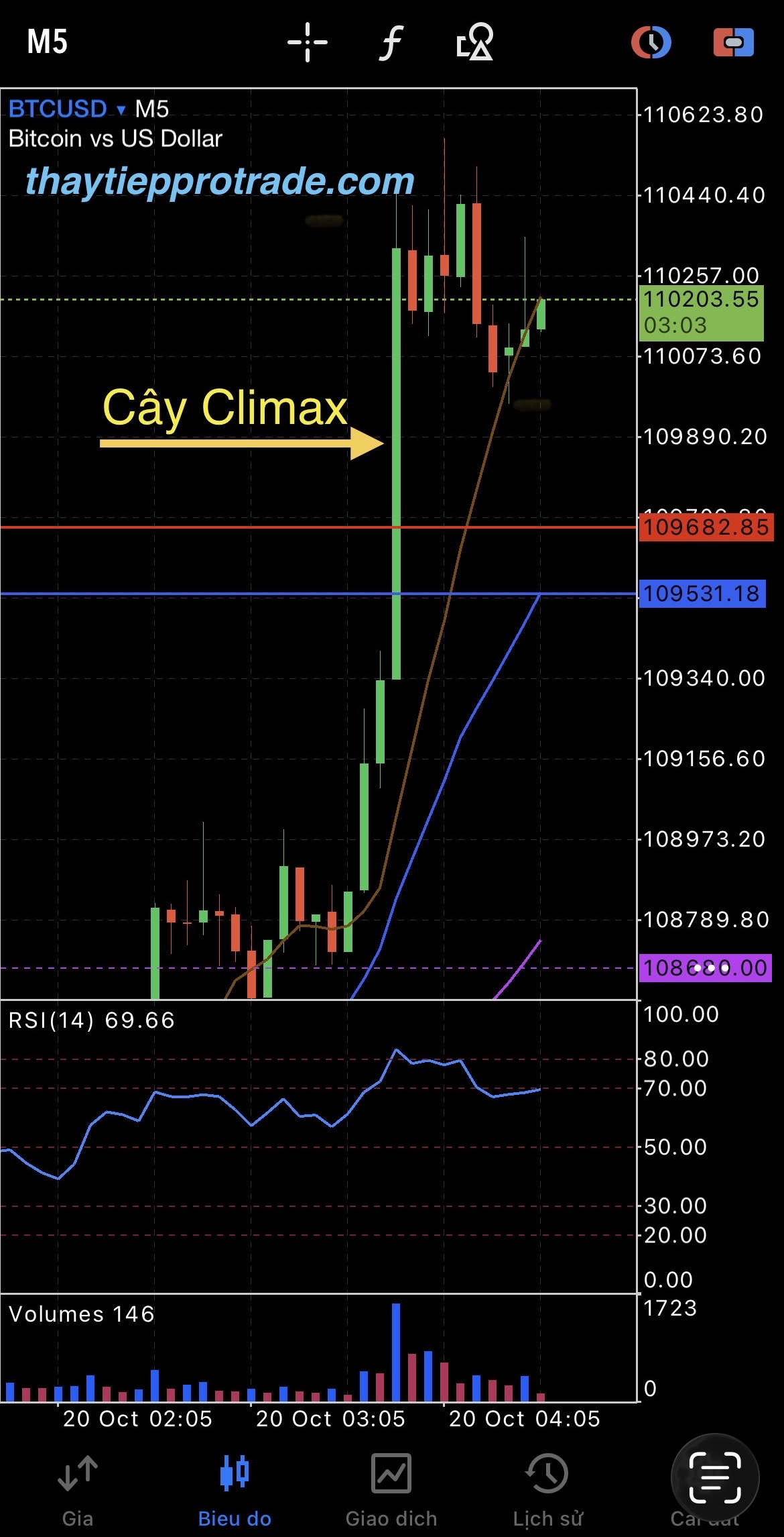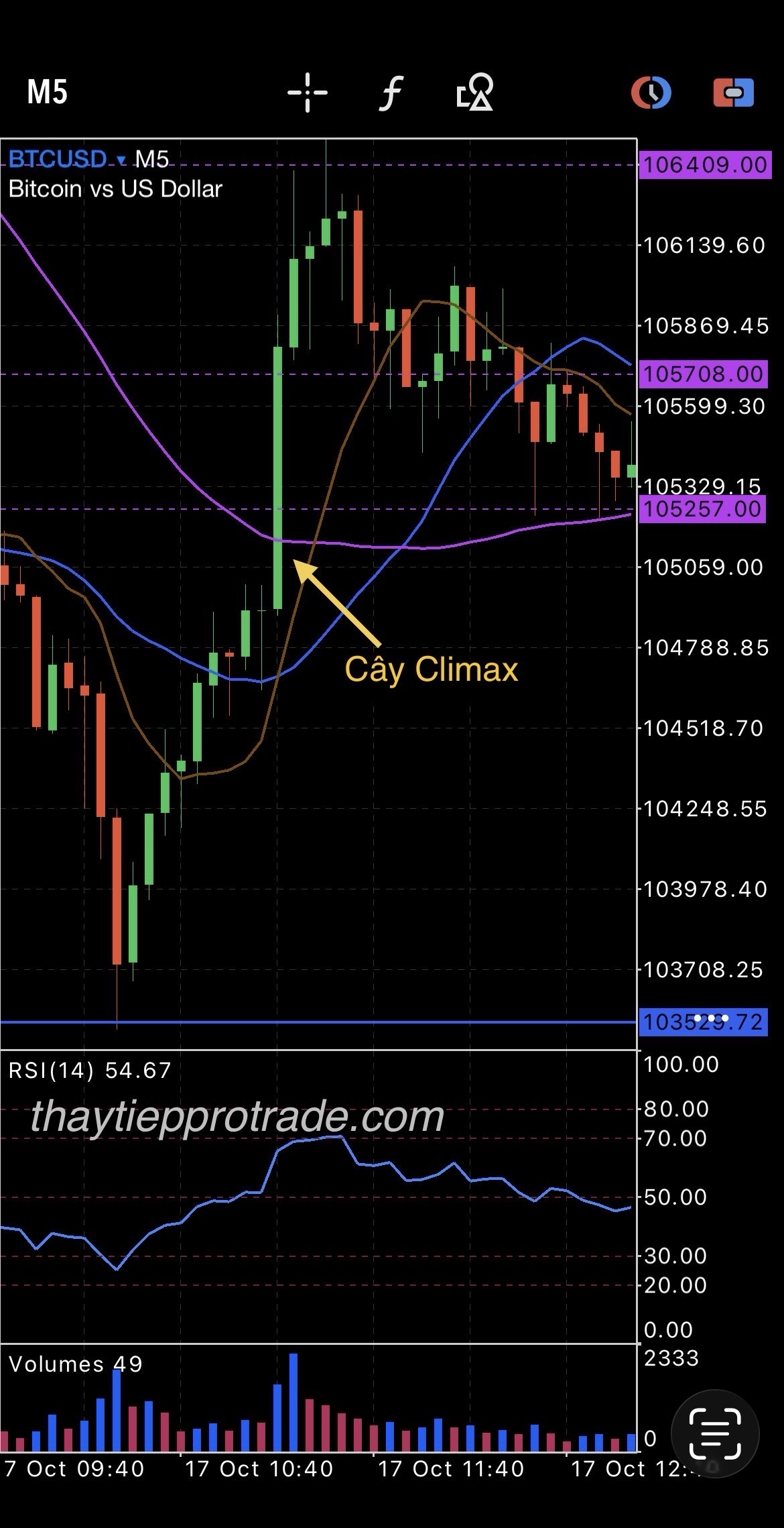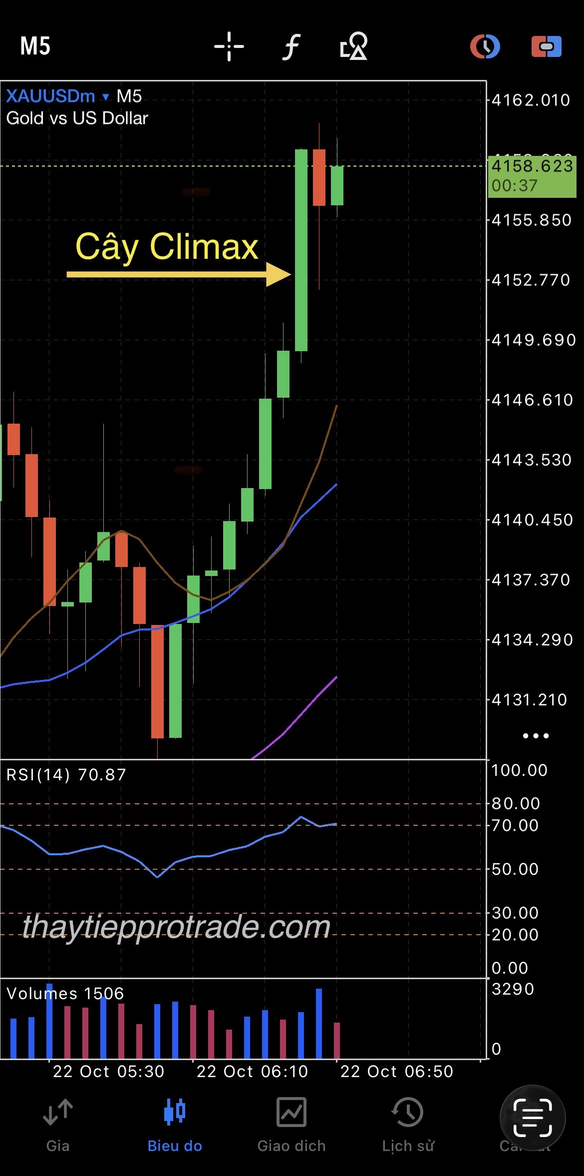 Trước khi kết thúc một xu hướng, thường xuất hiện một cây nến rất dài còn gọi là “cây climax” hay “cây cực điểm”.