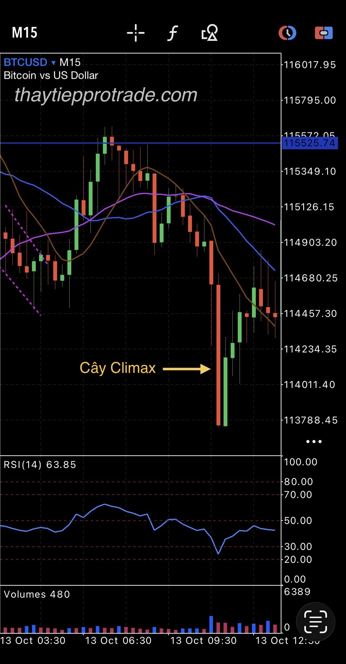 - Các “tay to” (smart money) chốt lời vào chính cú bùng nổ này, nên sau cây nến đó giá không còn lực, đảo chiều hoặc sideway ngay sau đó.