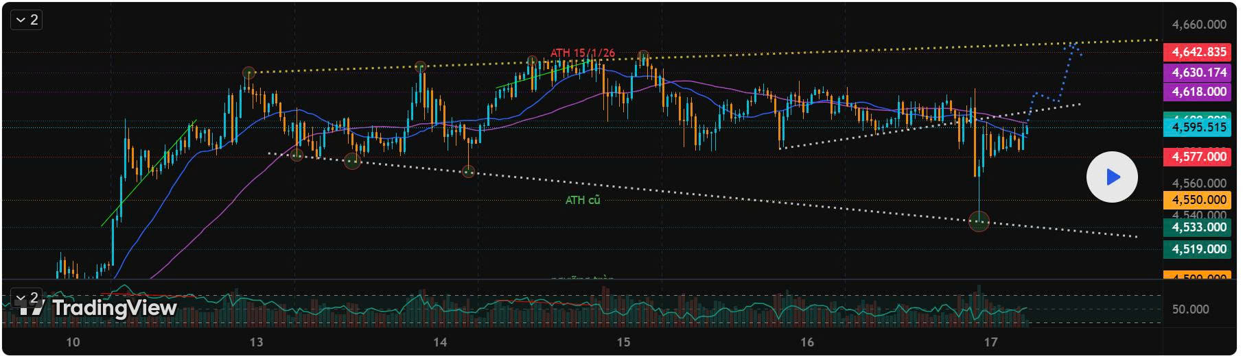 - Giá chạm kháng cự 4.618 - 4.630 - 4.640 (bật lại kèm nến M5 xác nhận)